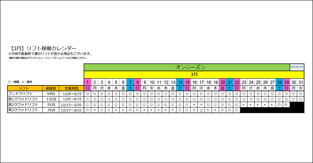 | ゴンドラ・リフト状況 | ||
