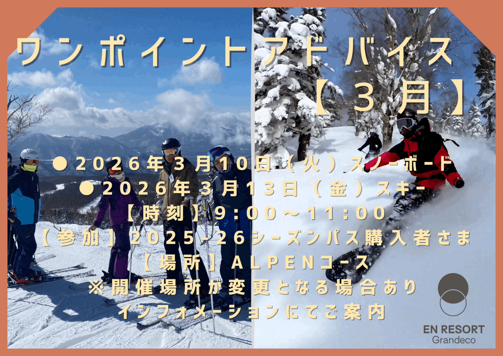 シーズンパス特典ワンポイントレッスン【3月】